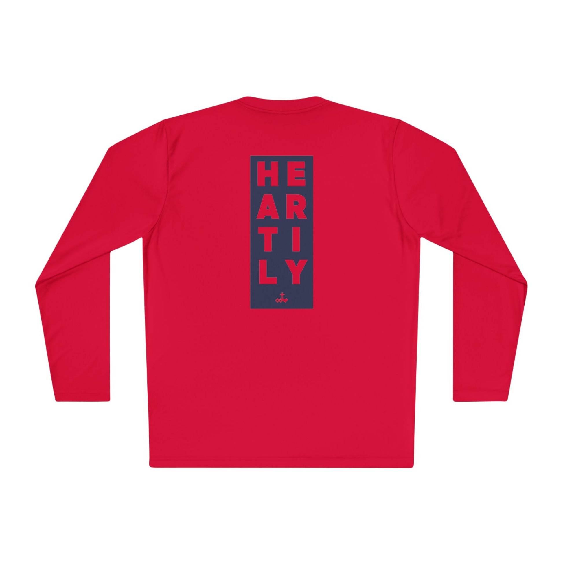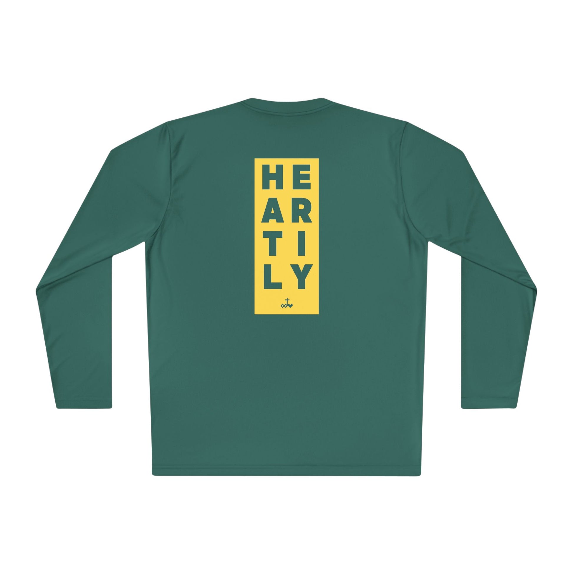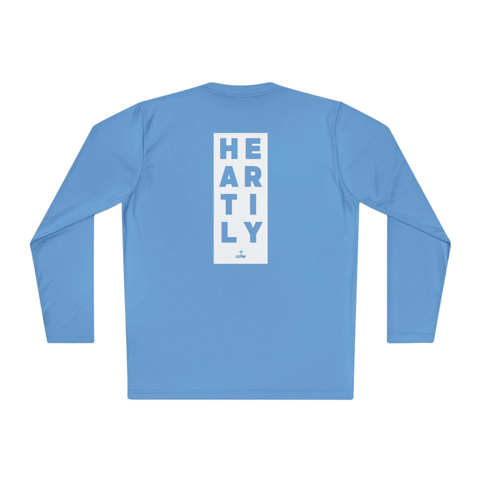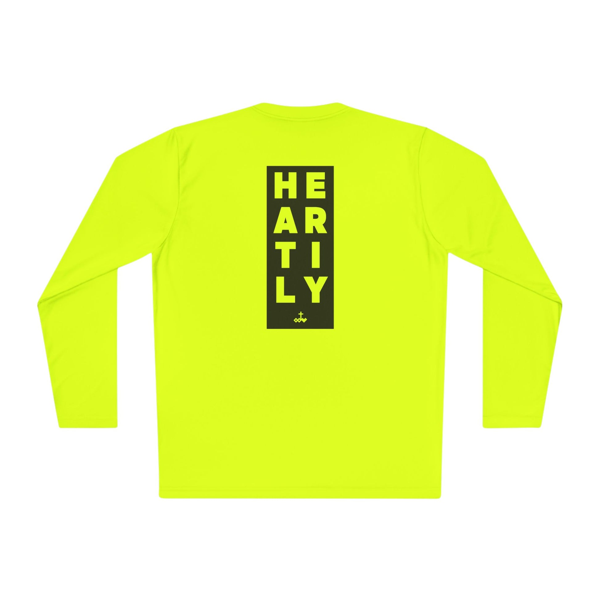 Lightweight long-sleeve built for movement and everyday momentum. The slim athletic cut and breathable 100% polyester keep you cool through runs, training sessions, or layered city days. Clean, minimalist text details — a small front block reading “WHATEVER YOU DO” and a taller vertical back panel spelling “HEARTLY” — give the tee a quiet, confident look that reads sporty and intentional. Wear it after a sunrise run, under a jacket between meetings, or as your go-to for active weekends. The fast-drying fabric and tear-away label make it comfortable for repeated wear and easy care.
