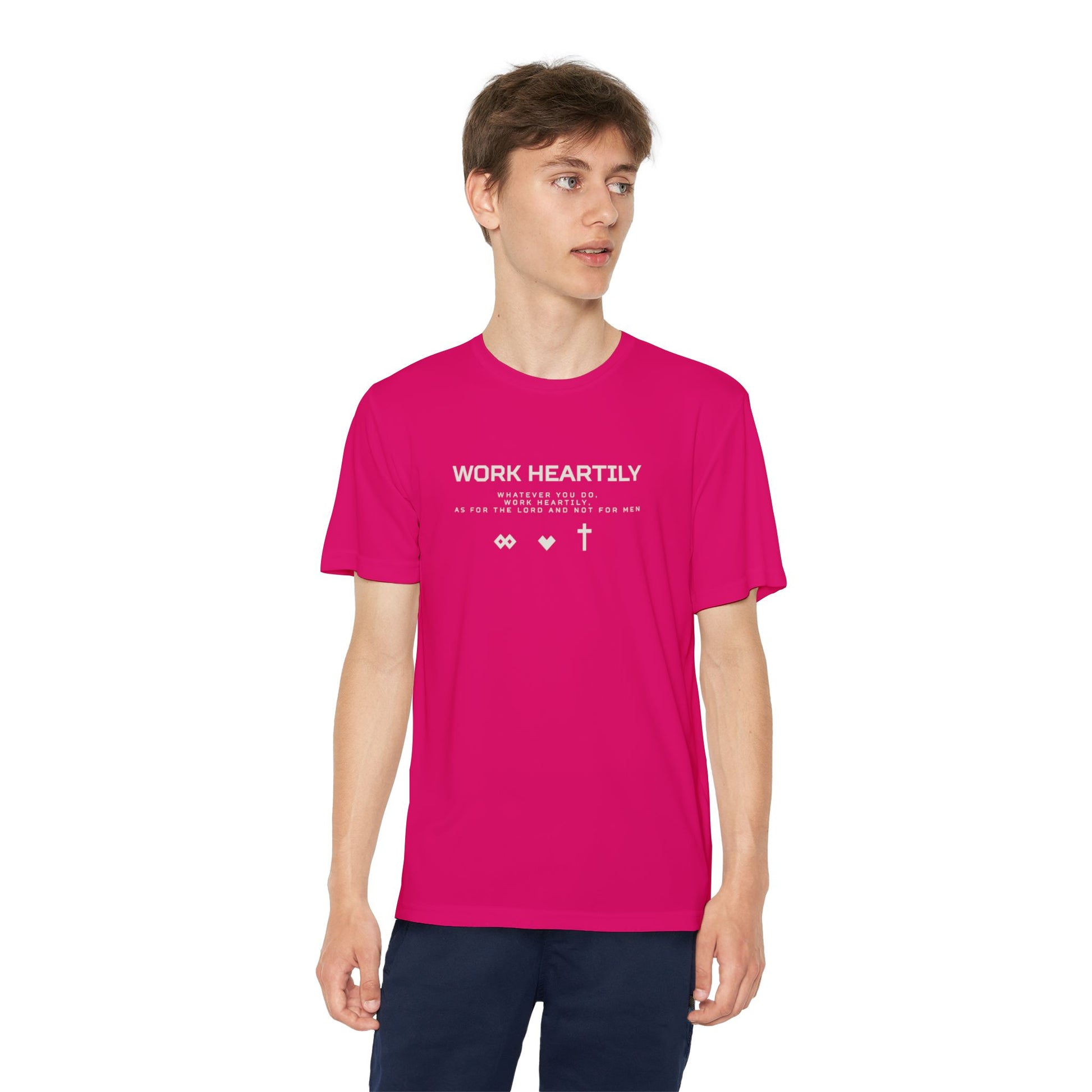 The Youth Competitor Tee is designed for active youngsters who thrive on energy and passion. Crafted from lightweight, moisture-wicking polyester, this tee promotes comfort and breathability during sports and outdoor activities. It creates a vibrant, motivational atmosphere, inspiring kids to pursue their athletic goals with confidence. Perfect for sports practices, summer camps, or casual outings, it is an ideal gift for young athletes. Celebrate their dedication at birthdays, back-to-school events, or any occasion that recognizes hard work and determination.